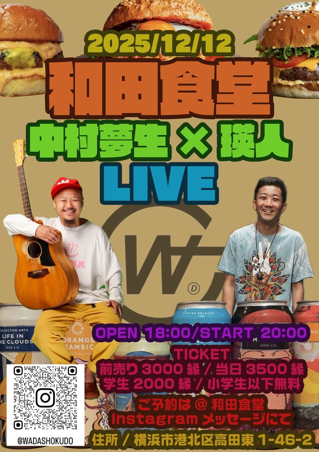 2025年12月12日(金)横浜・和田食堂にて「中村夢生×瑛人 LIVE」が開催されます!
