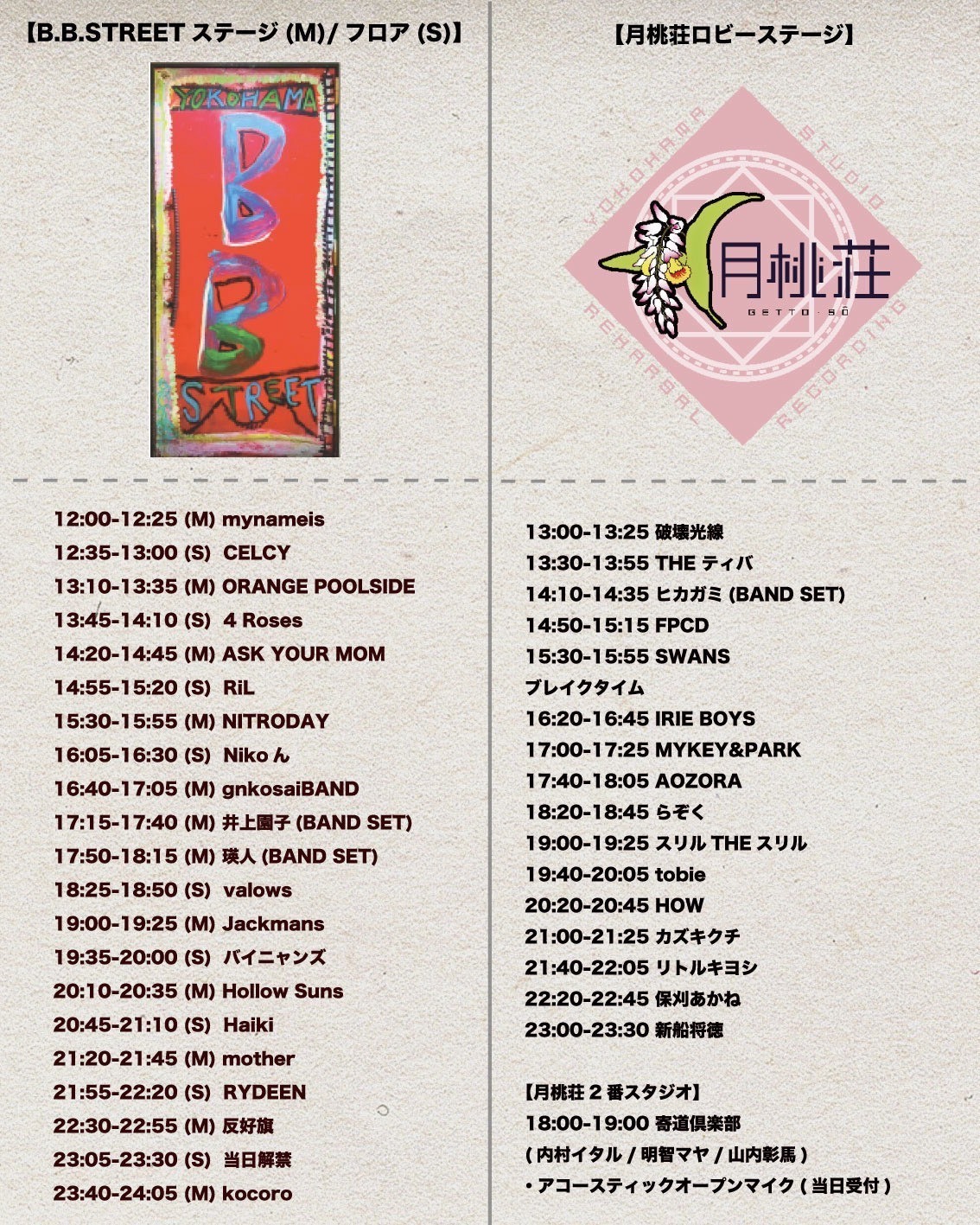 【タイムテーブル発表‼️】横浜B.B.STREET The last night of B.B. STREET & GETTOSO STUDIO(2025.12.30 UPDATE )