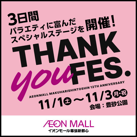 2025年11月1日(土)に千葉県・イオンモール幕張新都心 豊砂公園にて開催される「THANK YOU FES. 2025 ~イオンモール12周年感謝祭~」。